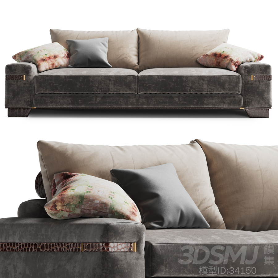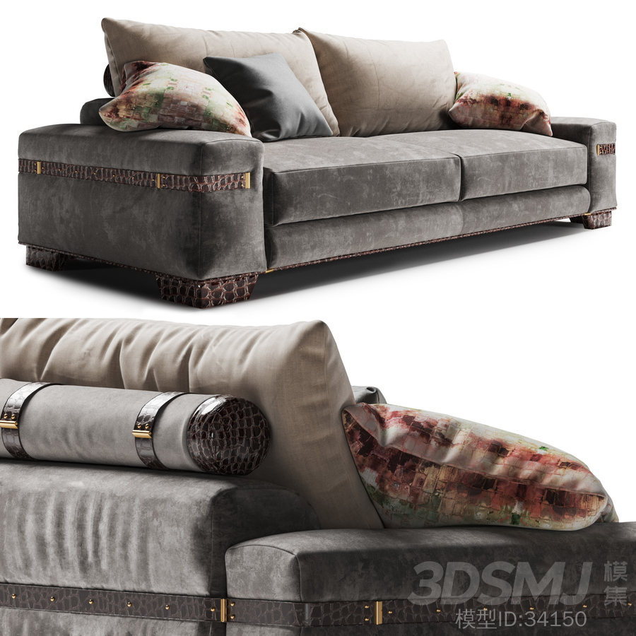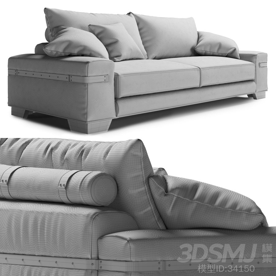 Tecni Nova -Sofa 1714 2650 * 1150 * 960织物组合,皮革装饰元素和一些金属质感是该系列1714年设计的起点。
