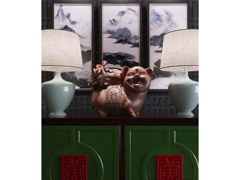 新中式柜子雕塑台灯组合