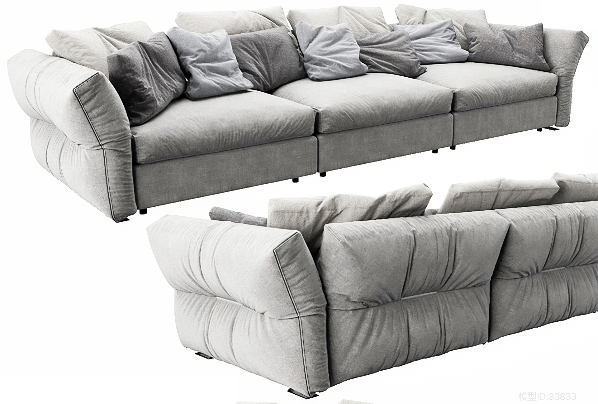 现代布艺三人沙发