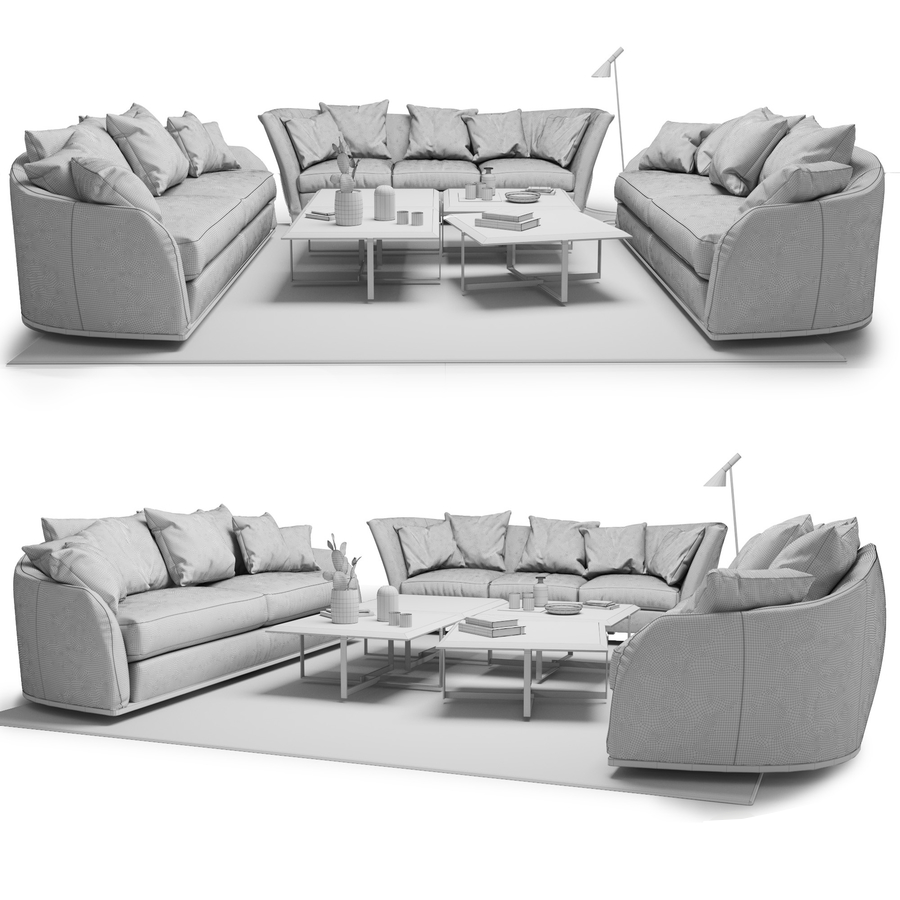 Flexform-沙发Alfred 2400 * 1100 * 830-沙发2900 * 960 * 840-咖啡桌雅克920 * 920 * 430-装饰,地毯,植物,书籍2013 3dsMax,