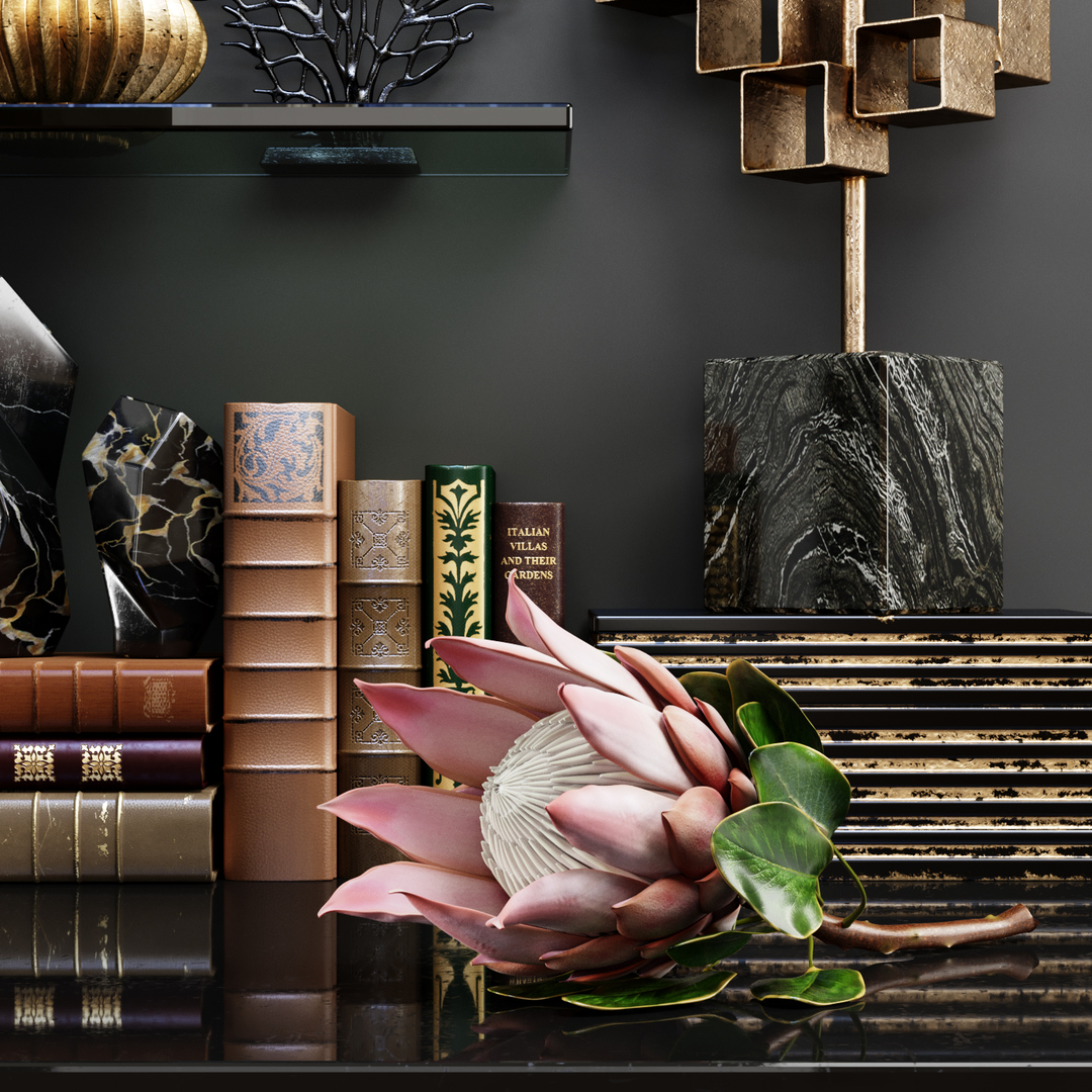 -雕塑-小雕像-书籍-花瓶
