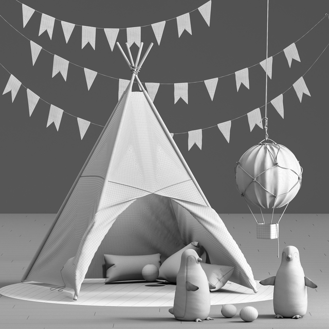 该套件包括一个帐篷,玩具和儿童房配件。