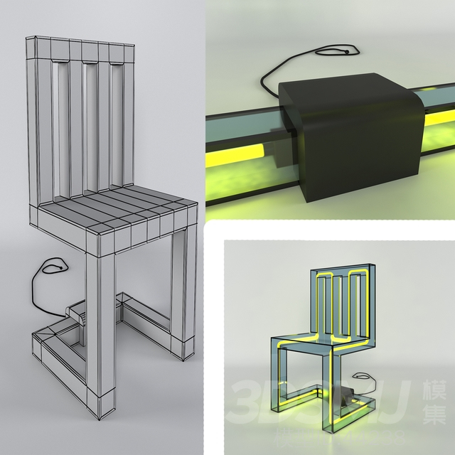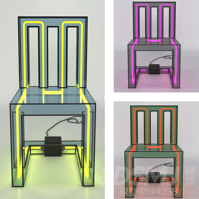 尺寸是真实的。命名是原则性的。舞台上有三把不同材质的椅子。