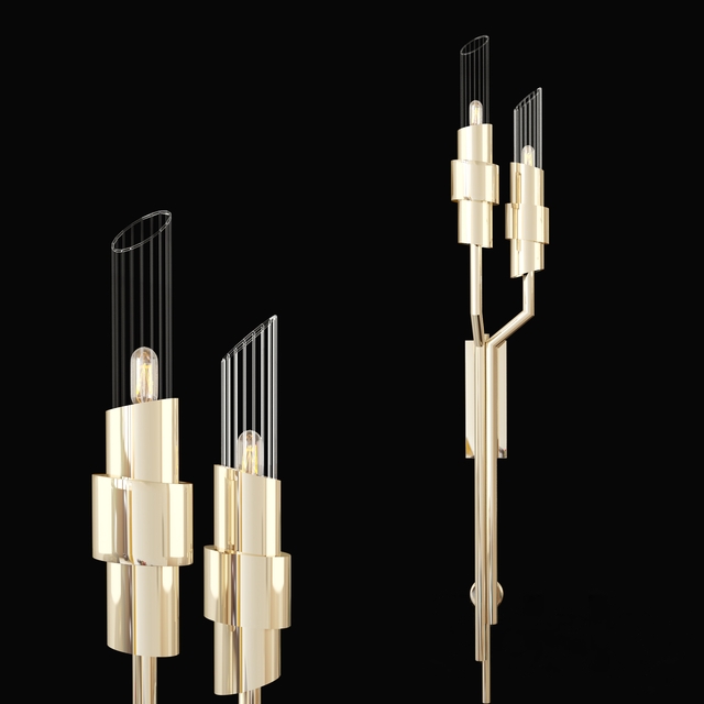 高细节3d模型Tycho Torch壁灯,装饰灯系列,装饰元素由金色金属制成