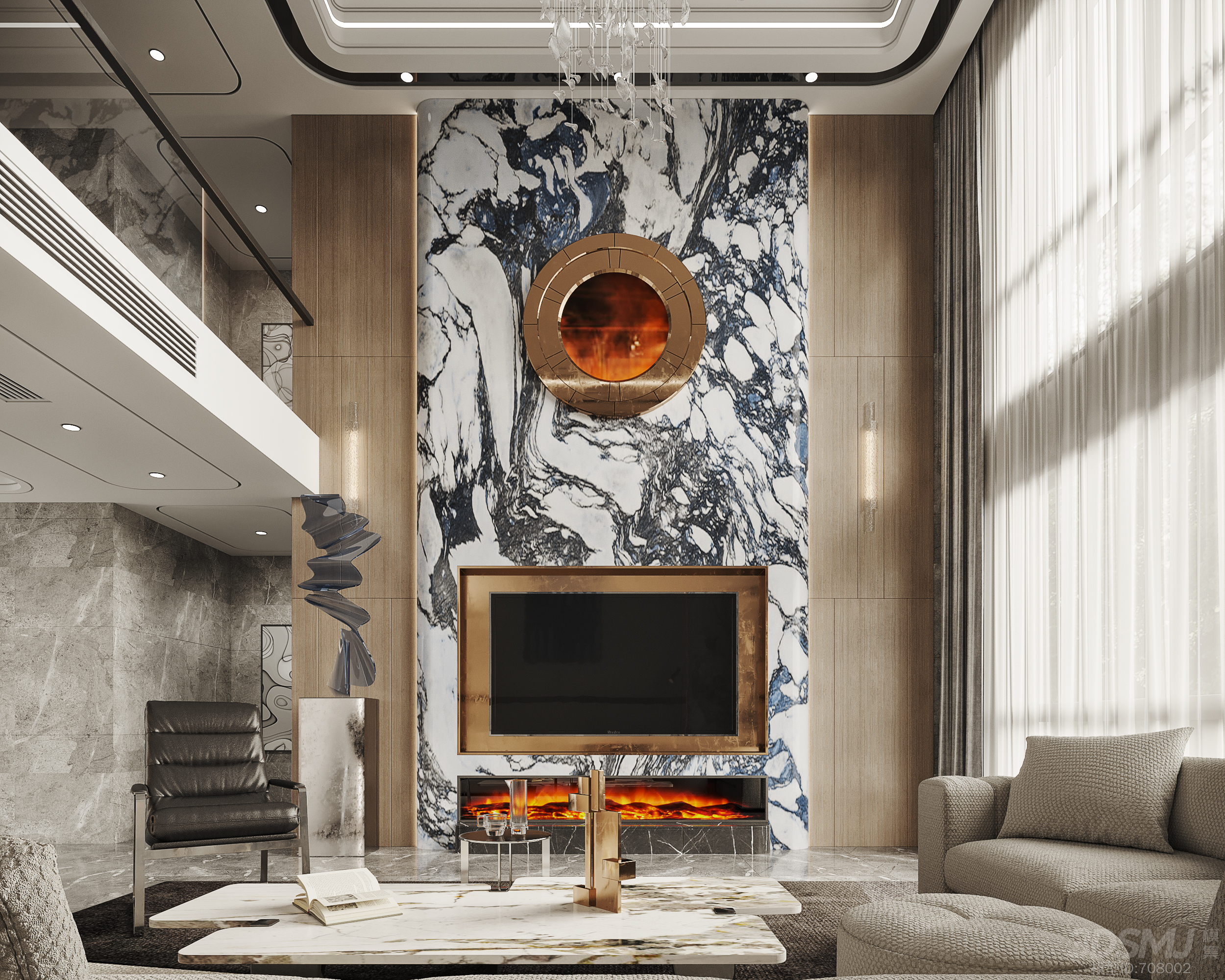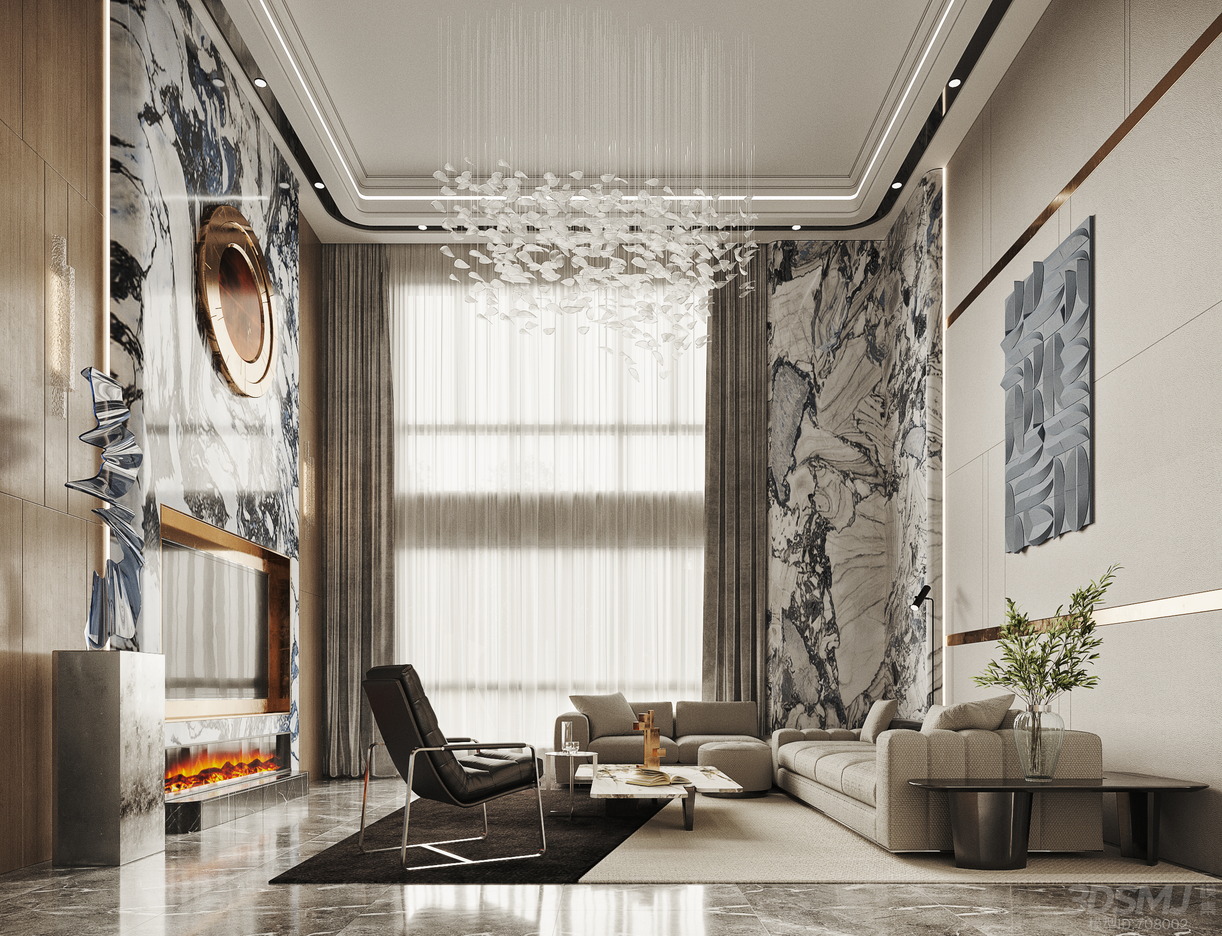 现代别墅客厅餐厅