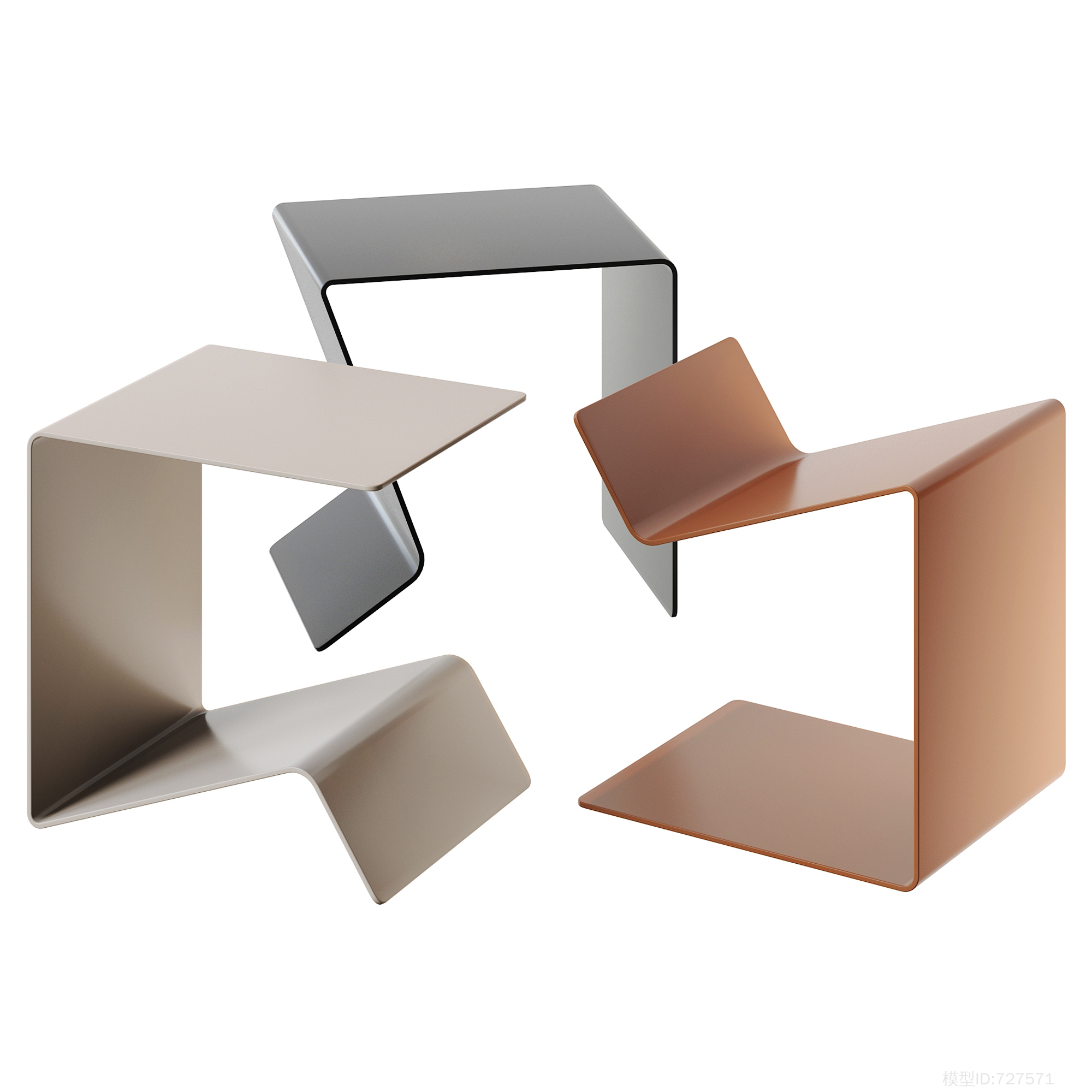 现代边几角几3D模型