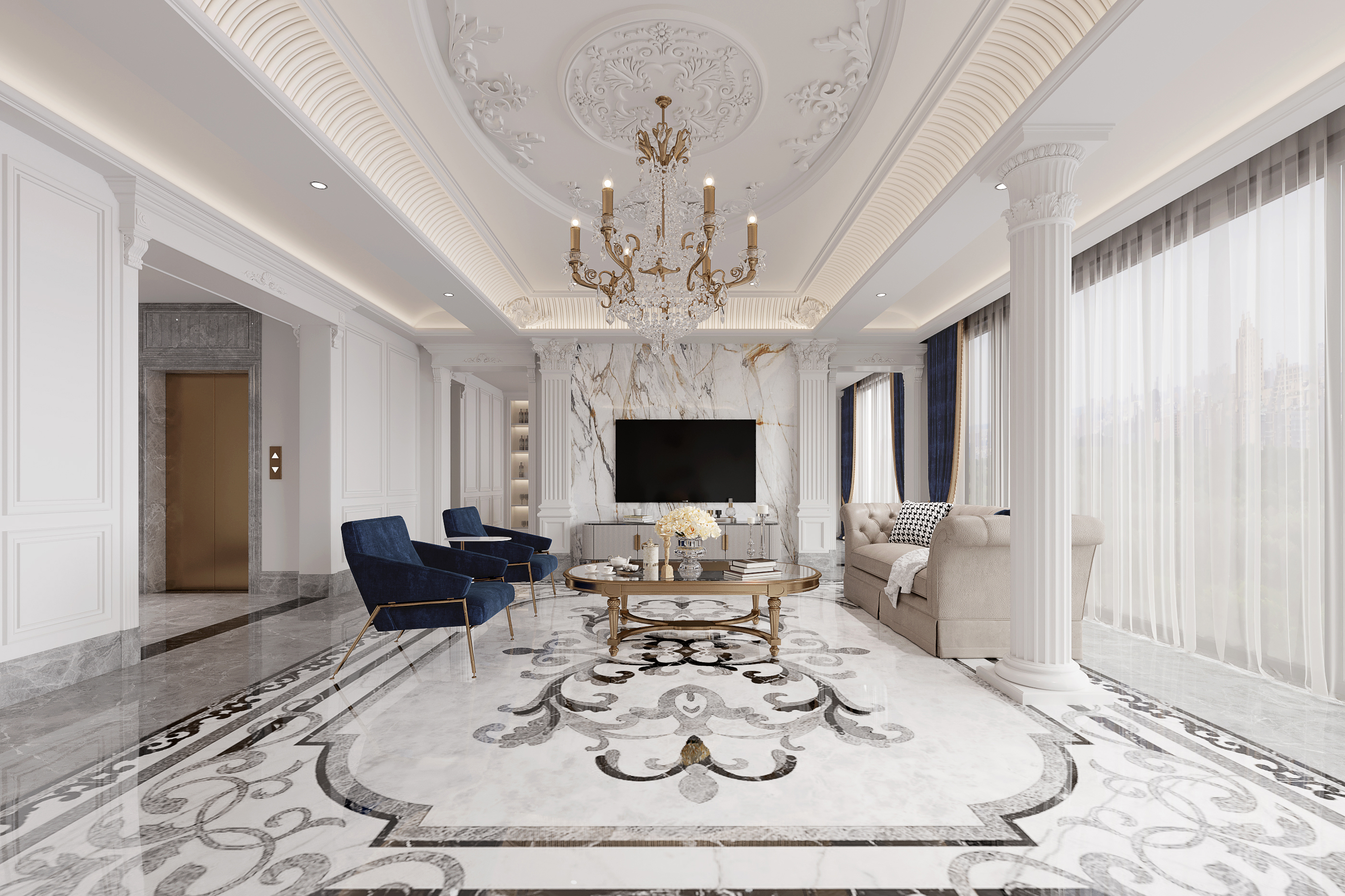 法式别墅客餐厅3D模型