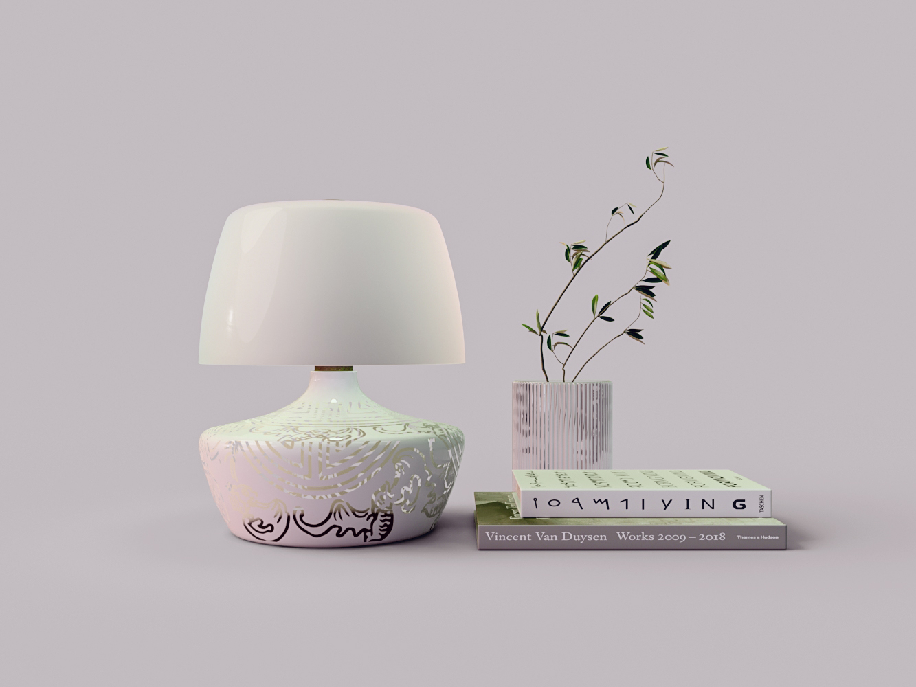 白色镂空陶瓷台灯