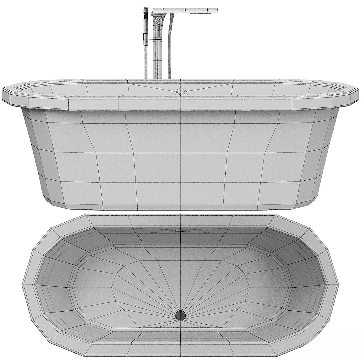 白色光泽独立式椭圆形浴缸
