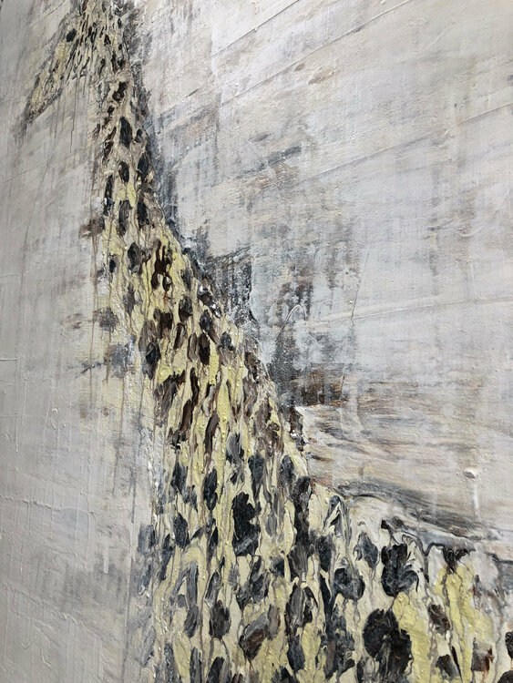 天然的粘土颜色赋予画面一个完全特殊的朦胧纹理,与亚克力颜色的微妙光泽形成了令人兴奋的对比。