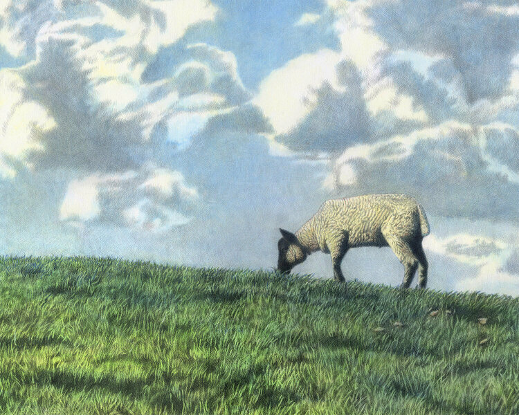 因此,作品“羔羊在山上”。