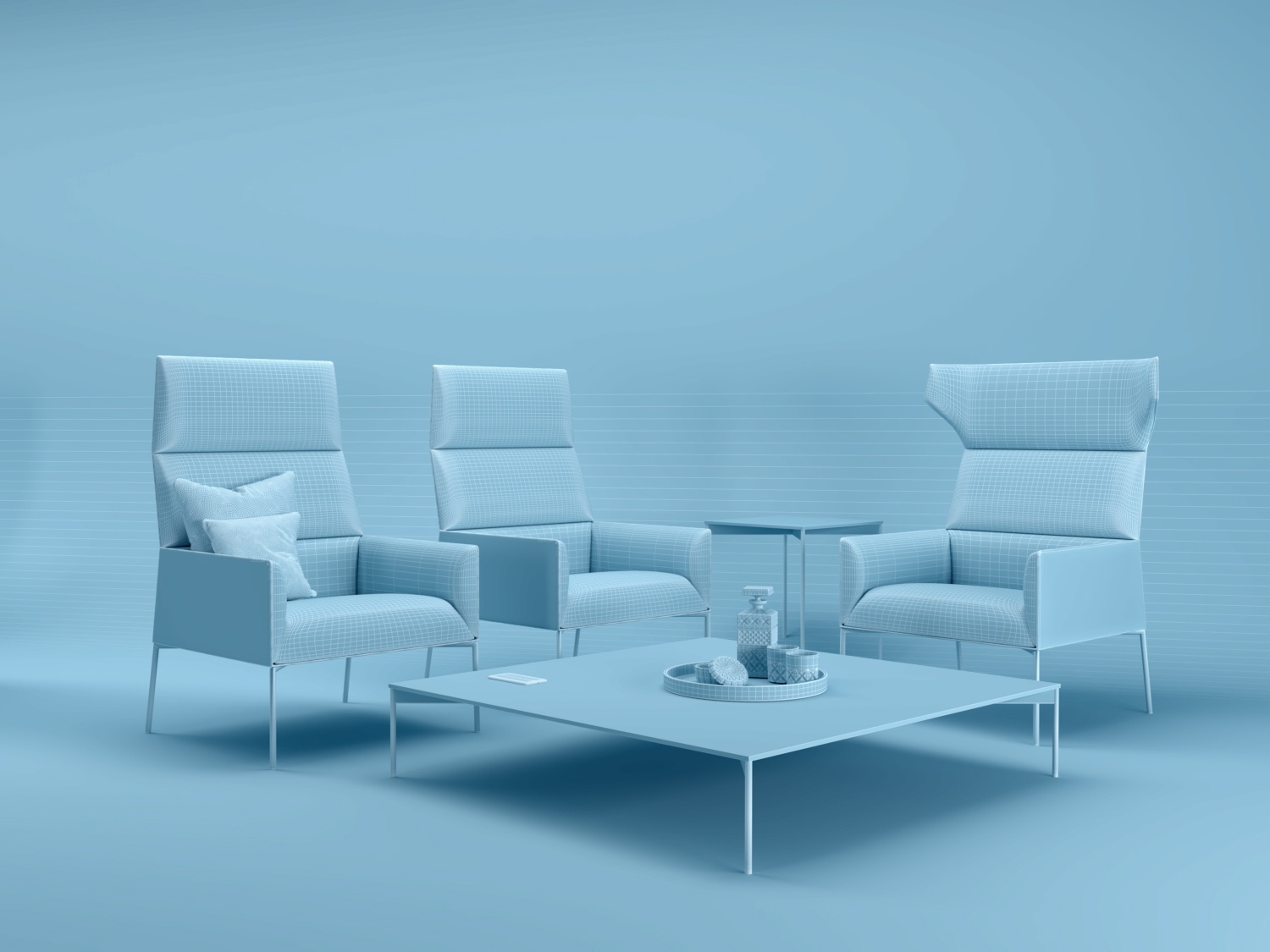 该系列基于锐利的几何形状,结合了支撑家具的微妙框架轮廓。
