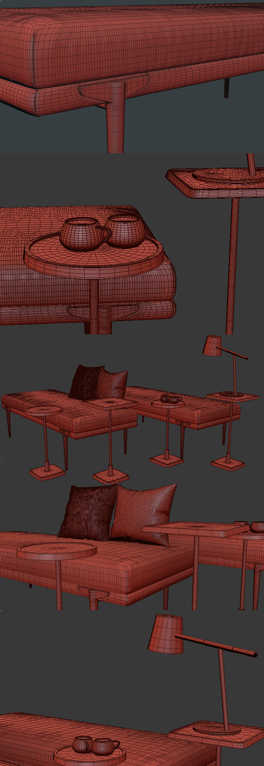 现代长凳台灯边几组合