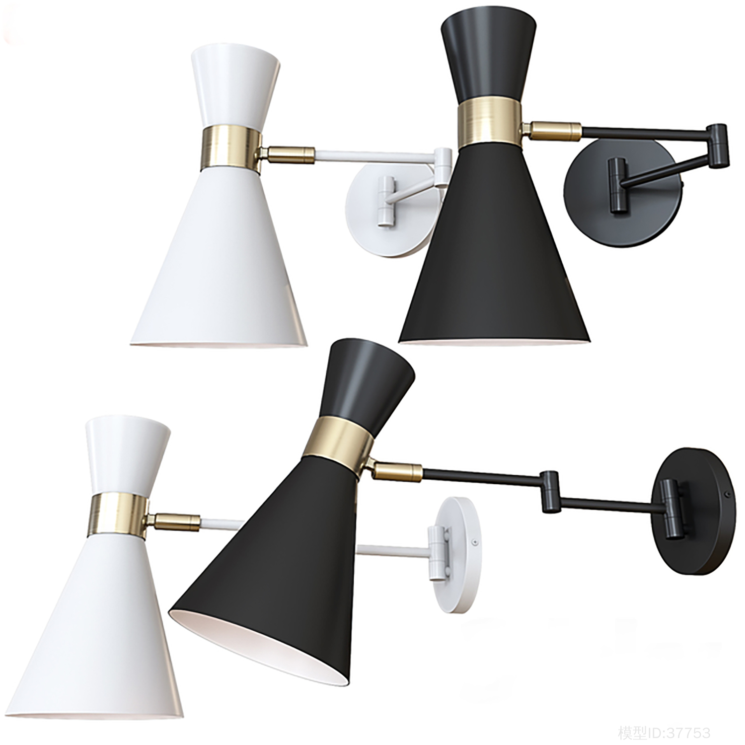 轻型哑光黑色LS-W305-BK烧杯壁式烛台,带有可旋转的臂部和黄铜细节,现代中世纪复古风格照明