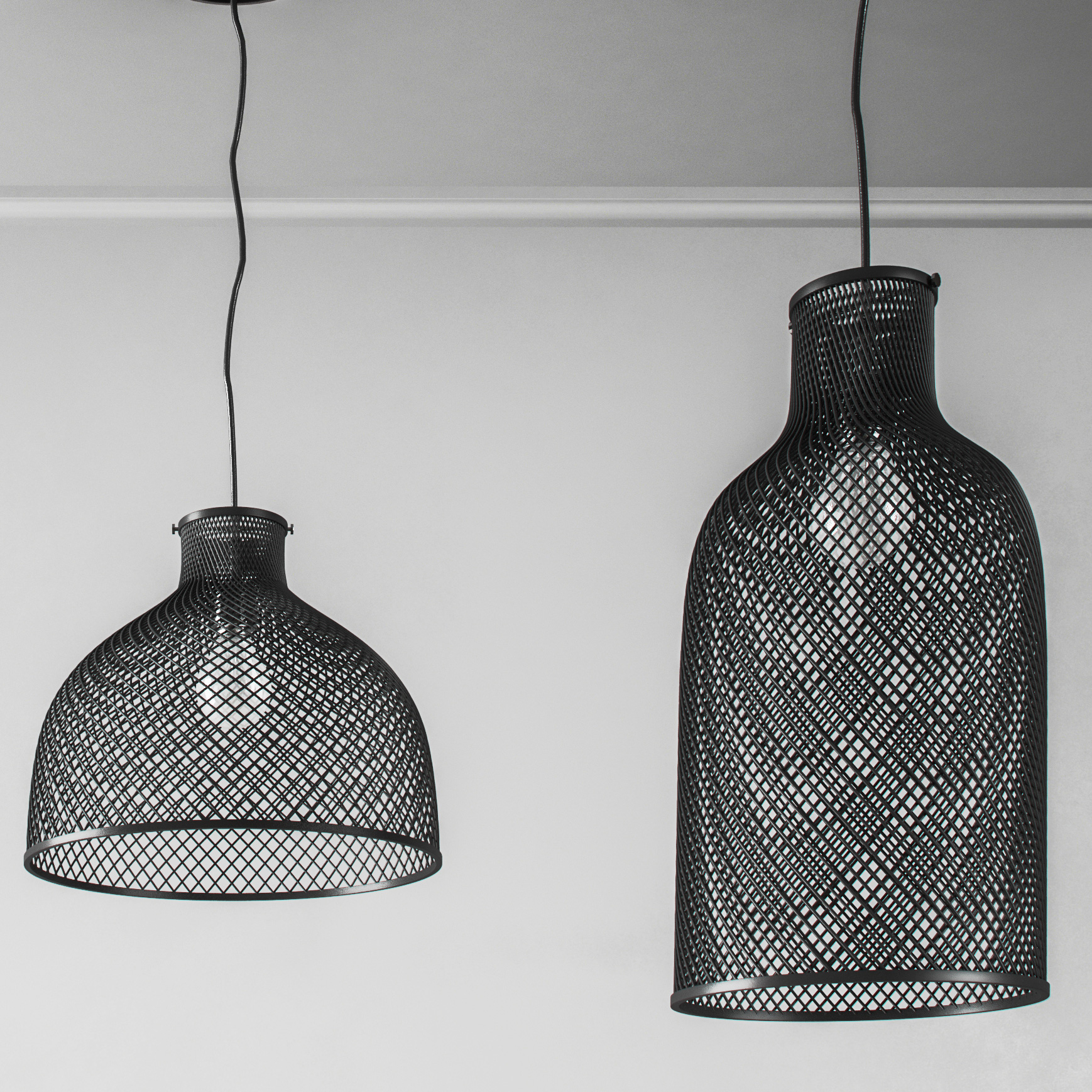 现代铁艺网格吊灯组合