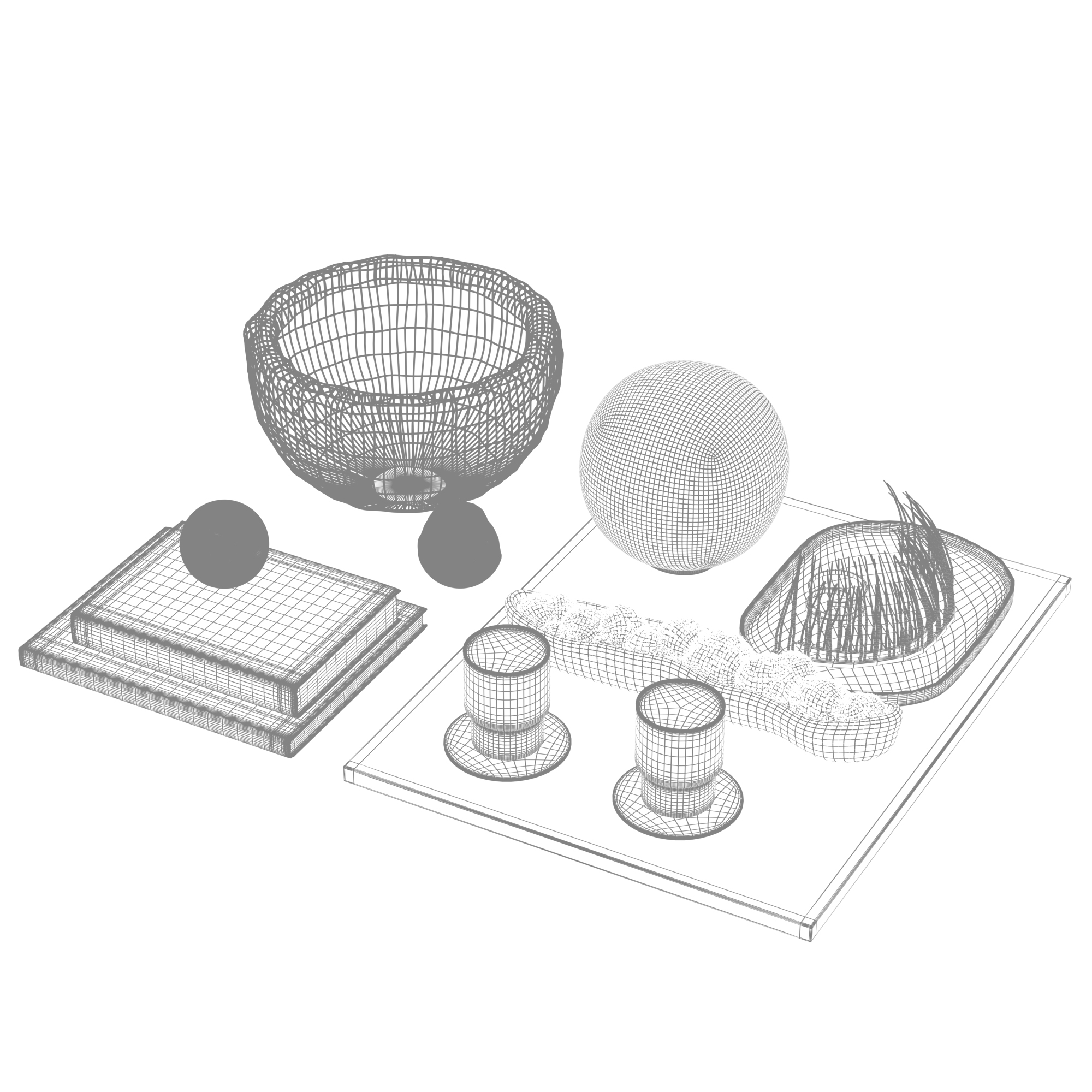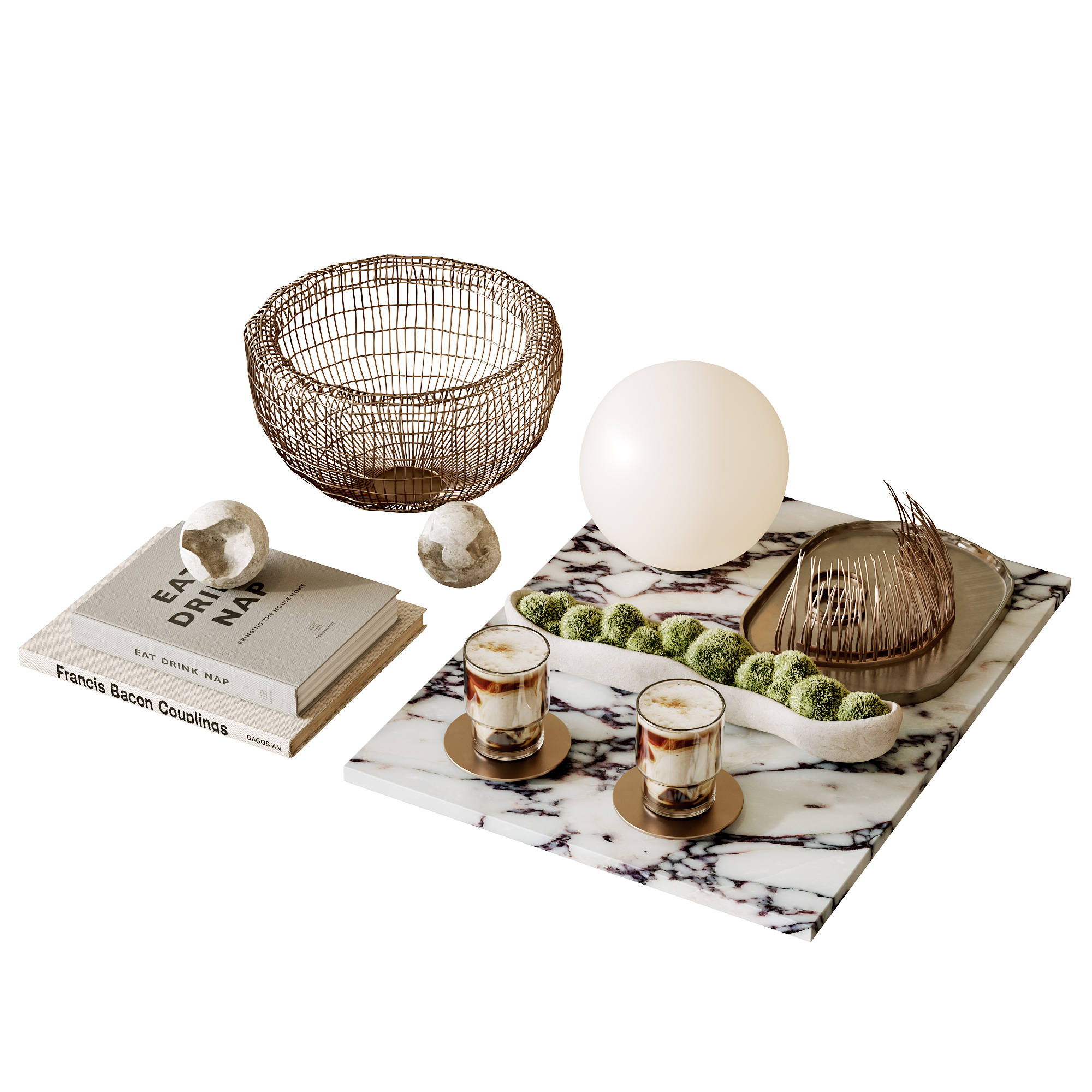 现代装饰摆件组合 书籍 苔藓 咖啡杯 饰品