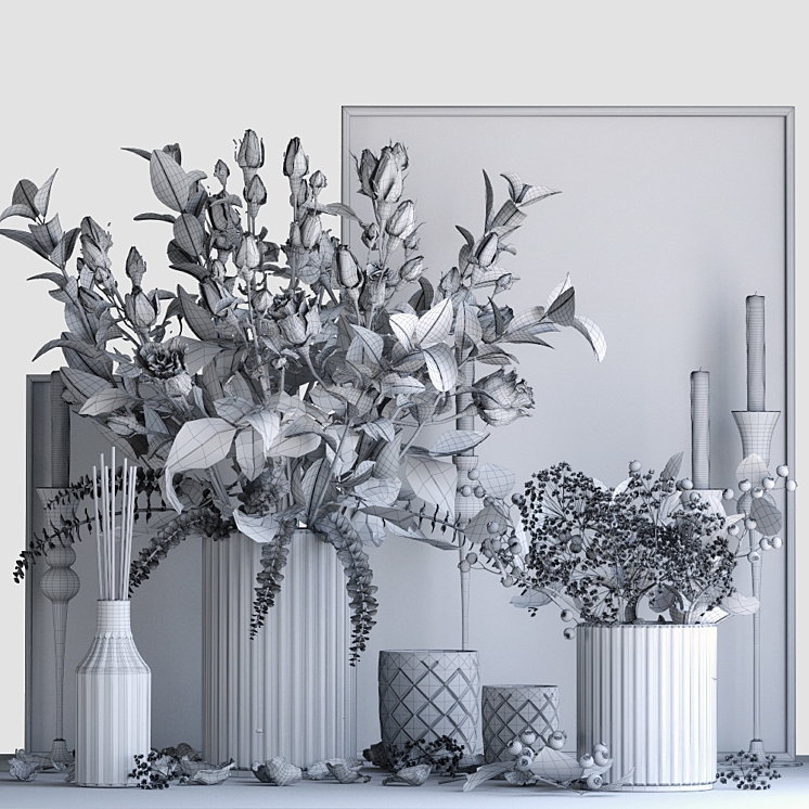 模型部分为平滑而制作(禁用了 Turbosmooth)。场景中的所有对象都按逻辑分组。视口中的纹理显示已禁用。所有蜡烛中的蜡均采用 sss 材质制成,为了加快渲染速度,可以将其更改为更轻的材质