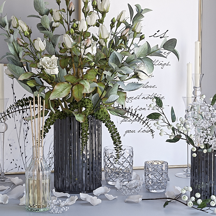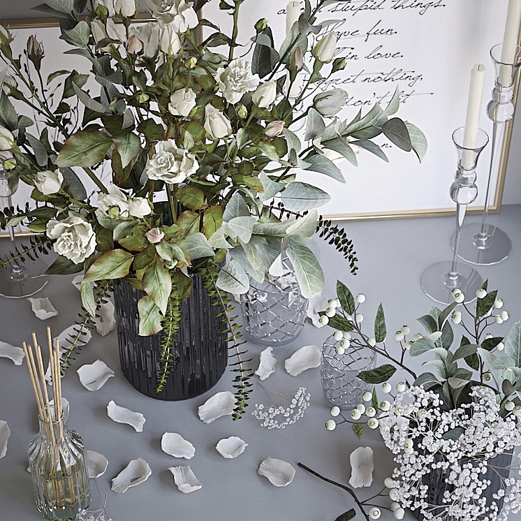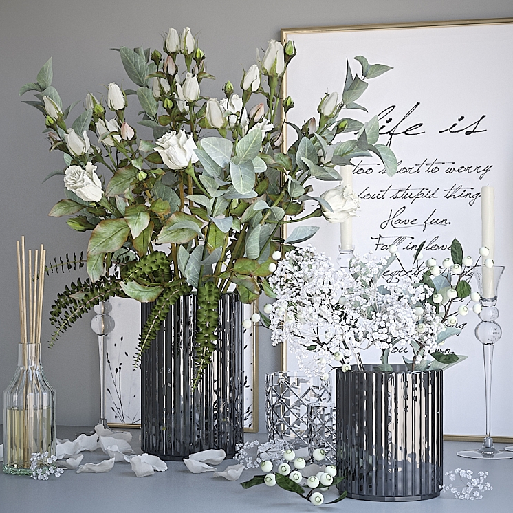 带有白玫瑰的装饰套装。