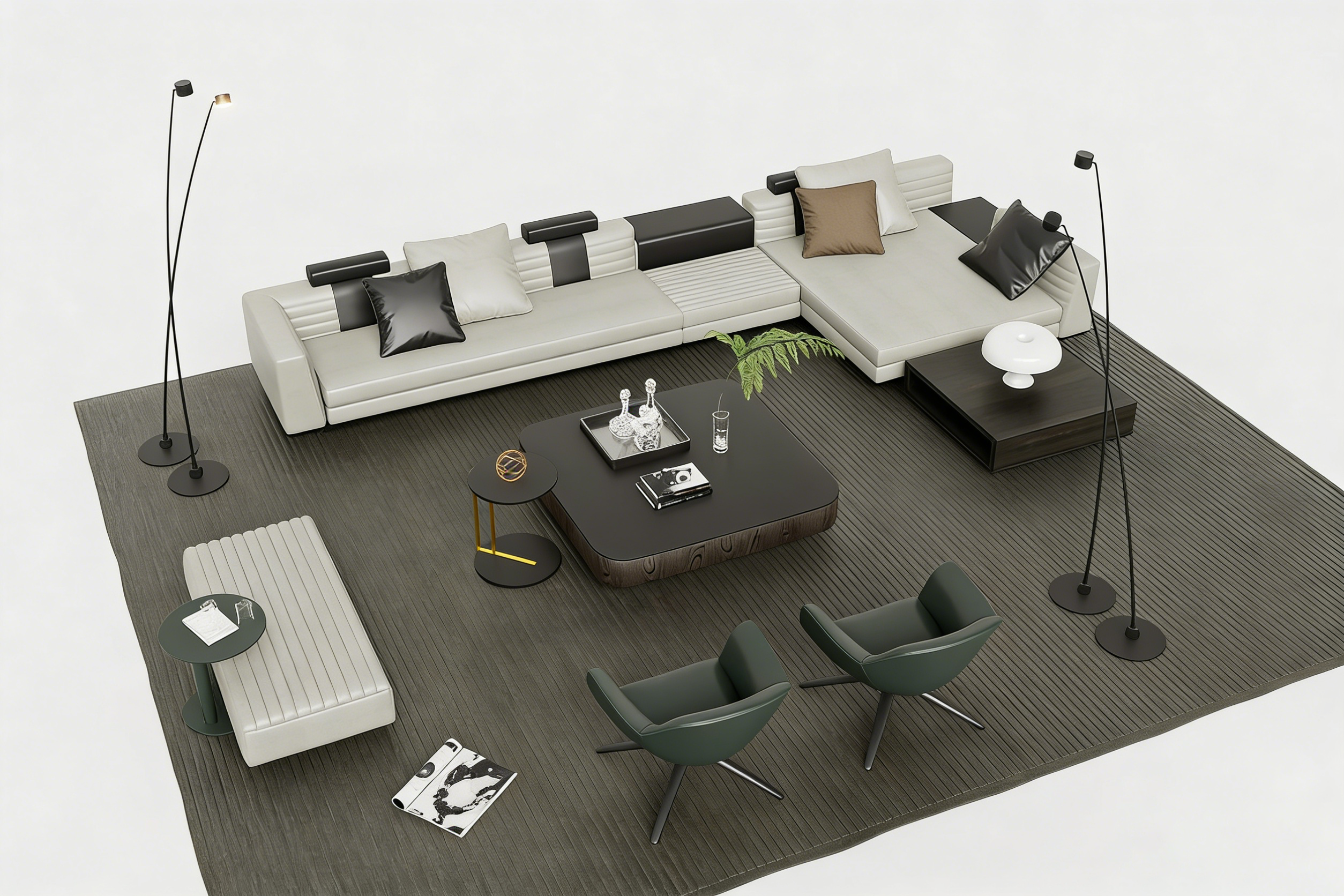现代简约客厅沙发茶几组合 L型布艺沙发 岩板茶几